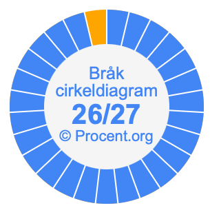 Dessutom kommer vi också att illustrera bråket 26/27 i ett cirkeldiagram och 26/27 som procent i ett cirkeldiagram.