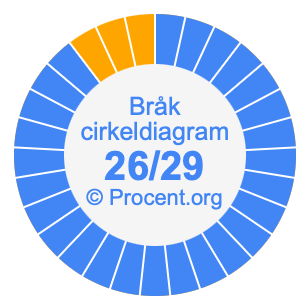 Dessutom kommer vi också att illustrera bråket 26/29 i ett cirkeldiagram och 26/29 som procent i ett cirkeldiagram.