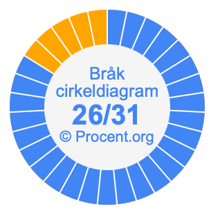 Illustrationerna nedan visar hur 26/31 och 83,87% delar upp ett cirkeldiagram olika men täcker samma område eftersom de är desamma.