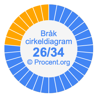 Illustrationerna nedan visar hur 26/34 och 76,47% delar upp ett cirkeldiagram olika men täcker samma område eftersom de är desamma.