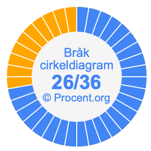 Illustrationerna nedan visar hur 26/36 och 72,22% delar upp ett cirkeldiagram olika men täcker samma område eftersom de är desamma.