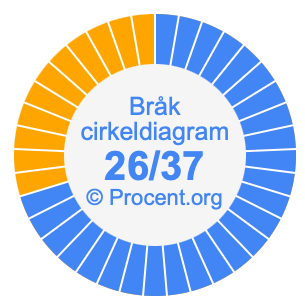 Illustrationerna nedan visar hur 26/37 och 70,27% delar upp ett cirkeldiagram olika men täcker samma område eftersom de är desamma.