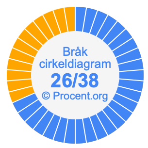 Illustrationerna nedan visar hur 26/38 och 68,42% delar upp ett cirkeldiagram olika men täcker samma område eftersom de är desamma.