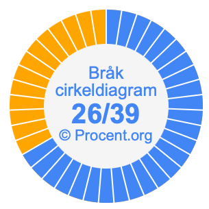 Illustrationerna nedan visar hur 26/39 och 66,67% delar upp ett cirkeldiagram olika men täcker samma område eftersom de är desamma.