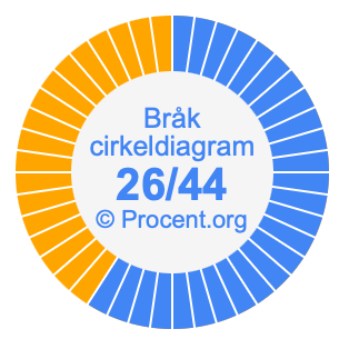 Dessutom kommer vi också att illustrera bråket 26/44 i ett cirkeldiagram och 26/44 som procent i ett cirkeldiagram.