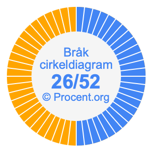 Illustrationerna nedan visar hur 26/52 och 50% delar upp ett cirkeldiagram olika men täcker samma område eftersom de är desamma.