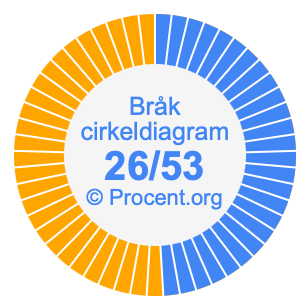 Illustrationerna nedan visar hur 26/53 och 49,06% delar upp ett cirkeldiagram olika men täcker samma område eftersom de är desamma.