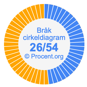 Dessutom kommer vi också att illustrera bråket 26/54 i ett cirkeldiagram och 26/54 som procent i ett cirkeldiagram.