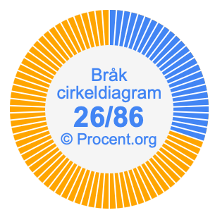 Dessutom kommer vi också att illustrera bråket 26/86 i ett cirkeldiagram och 26/86 som procent i ett cirkeldiagram.