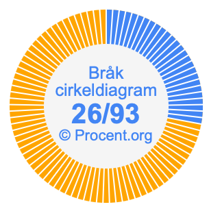 Dessutom kommer vi också att illustrera bråket 26/93 i ett cirkeldiagram och 26/93 som procent i ett cirkeldiagram.