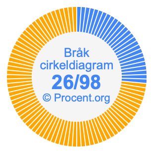 Illustrationerna nedan visar hur 26/98 och 26,53% delar upp ett cirkeldiagram olika men täcker samma område eftersom de är desamma.
