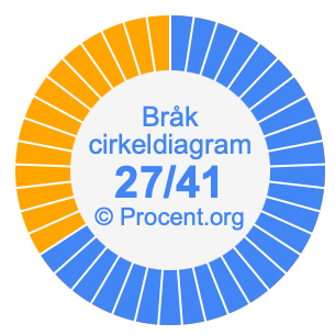 Illustrationerna nedan visar hur 27/41 och 65,85% delar upp ett cirkeldiagram olika men täcker samma område eftersom de är desamma.