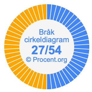 Dessutom kommer vi också att illustrera bråket 27/54 i ett cirkeldiagram och 27/54 som procent i ett cirkeldiagram.