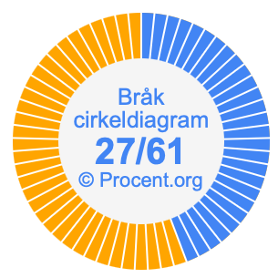 Dessutom kommer vi också att illustrera bråket 27/61 i ett cirkeldiagram och 27/61 som procent i ett cirkeldiagram.