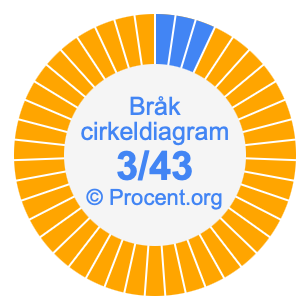 Dessutom kommer vi också att illustrera bråket 3/43 i ett cirkeldiagram och 3/43 som procent i ett cirkeldiagram.