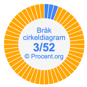 3/52 är ett bråk som betyder 3 av 52, och procent betyder något av 100. Vi kan därför göra följande ekvation för att få 3/52 som procent: