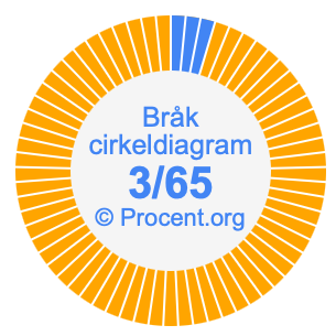 Dessutom kommer vi också att illustrera bråket 3/65 i ett cirkeldiagram och 3/65 som procent i ett cirkeldiagram.