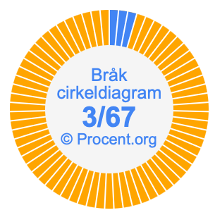 Dessutom kommer vi också att illustrera bråket 3/67 i ett cirkeldiagram och 3/67 som procent i ett cirkeldiagram.