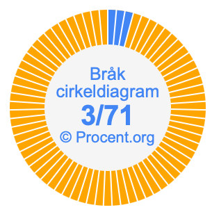 Dessutom kommer vi också att illustrera bråket 3/71 i ett cirkeldiagram och 3/71 som procent i ett cirkeldiagram.