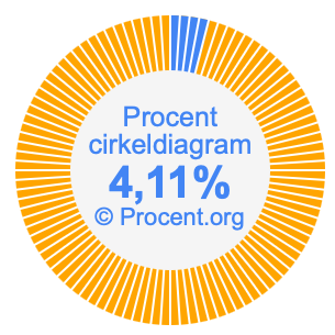 Illustrationerna nedan visar hur 3/73 och 4,11% delar upp ett cirkeldiagram olika men täcker samma område eftersom de är desamma.