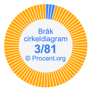 Dessutom kommer vi också att illustrera bråket 3/81 i ett cirkeldiagram och 3/81 som procent i ett cirkeldiagram.