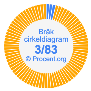 Dessutom kommer vi också att illustrera bråket 3/83 i ett cirkeldiagram och 3/83 som procent i ett cirkeldiagram.