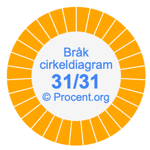 Dessutom kommer vi också att illustrera bråket 31/31 i ett cirkeldiagram och 31/31 som procent i ett cirkeldiagram.