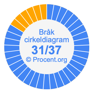 Dessutom kommer vi också att illustrera bråket 31/37 i ett cirkeldiagram och 31/37 som procent i ett cirkeldiagram.
