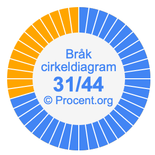 Dessutom kommer vi också att illustrera bråket 31/44 i ett cirkeldiagram och 31/44 som procent i ett cirkeldiagram.