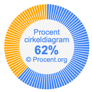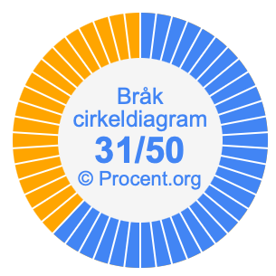 Illustrationerna nedan visar hur 31/50 och 62% delar upp ett cirkeldiagram olika men täcker samma område eftersom de är desamma.