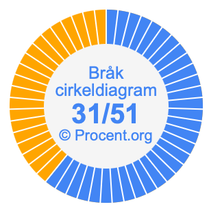 Illustrationerna nedan visar hur 31/51 och 60,78% delar upp ett cirkeldiagram olika men täcker samma område eftersom de är desamma.