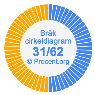 Dessutom kommer vi också att illustrera bråket 31/62 i ett cirkeldiagram och 31/62 som procent i ett cirkeldiagram.