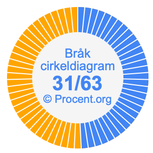 Illustrationerna nedan visar hur 31/63 och 49,21% delar upp ett cirkeldiagram olika men täcker samma område eftersom de är desamma.