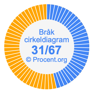 Illustrationerna nedan visar hur 31/67 och 46,27% delar upp ett cirkeldiagram olika men täcker samma område eftersom de är desamma.