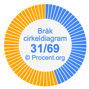Dessutom kommer vi också att illustrera bråket 31/69 i ett cirkeldiagram och 31/69 som procent i ett cirkeldiagram.