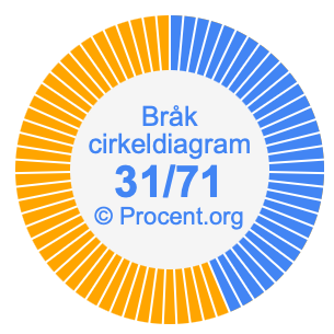 Dessutom kommer vi också att illustrera bråket 31/71 i ett cirkeldiagram och 31/71 som procent i ett cirkeldiagram.