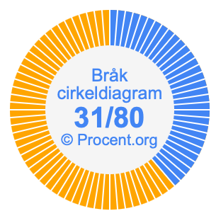 Illustrationerna nedan visar hur 31/80 och 38,75% delar upp ett cirkeldiagram olika men täcker samma område eftersom de är desamma.