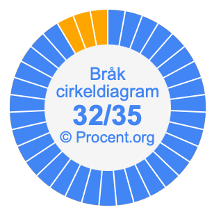 Dessutom kommer vi också att illustrera bråket 32/35 i ett cirkeldiagram och 32/35 som procent i ett cirkeldiagram.