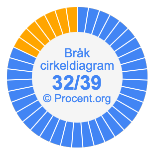 Illustrationerna nedan visar hur 32/39 och 82,05% delar upp ett cirkeldiagram olika men täcker samma område eftersom de är desamma.