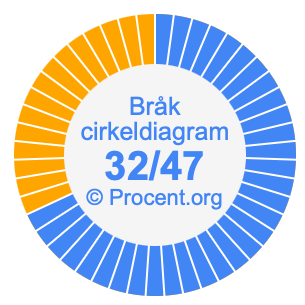 Illustrationerna nedan visar hur 32/47 och 68,09% delar upp ett cirkeldiagram olika men täcker samma område eftersom de är desamma.