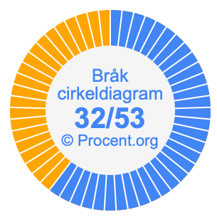 Dessutom kommer vi också att illustrera bråket 32/53 i ett cirkeldiagram och 32/53 som procent i ett cirkeldiagram.