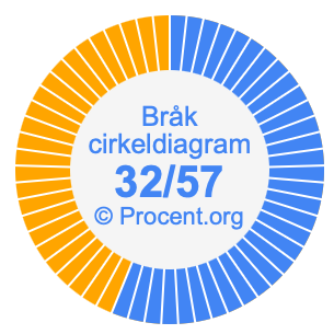 Illustrationerna nedan visar hur 32/57 och 56,14% delar upp ett cirkeldiagram olika men täcker samma område eftersom de är desamma.