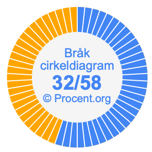 Illustrationerna nedan visar hur 32/58 och 55,17% delar upp ett cirkeldiagram olika men täcker samma område eftersom de är desamma.