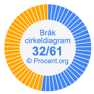 Illustrationerna nedan visar hur 32/61 och 52,46% delar upp ett cirkeldiagram olika men täcker samma område eftersom de är desamma.
