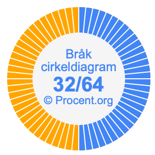 Illustrationerna nedan visar hur 32/64 och 50% delar upp ett cirkeldiagram olika men täcker samma område eftersom de är desamma.