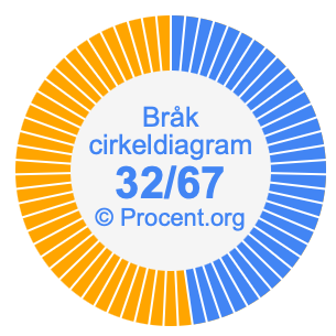 Dessutom kommer vi också att illustrera bråket 32/67 i ett cirkeldiagram och 32/67 som procent i ett cirkeldiagram.