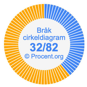 Dessutom kommer vi också att illustrera bråket 32/82 i ett cirkeldiagram och 32/82 som procent i ett cirkeldiagram.