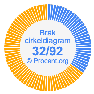 Dessutom kommer vi också att illustrera bråket 32/92 i ett cirkeldiagram och 32/92 som procent i ett cirkeldiagram.