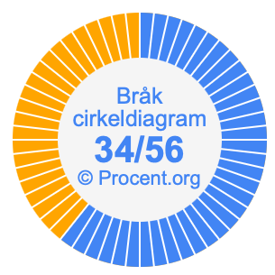 Illustrationerna nedan visar hur 34/56 och 60,71% delar upp ett cirkeldiagram olika men täcker samma område eftersom de är desamma.