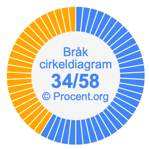 Illustrationerna nedan visar hur 34/58 och 58,62% delar upp ett cirkeldiagram olika men täcker samma område eftersom de är desamma.